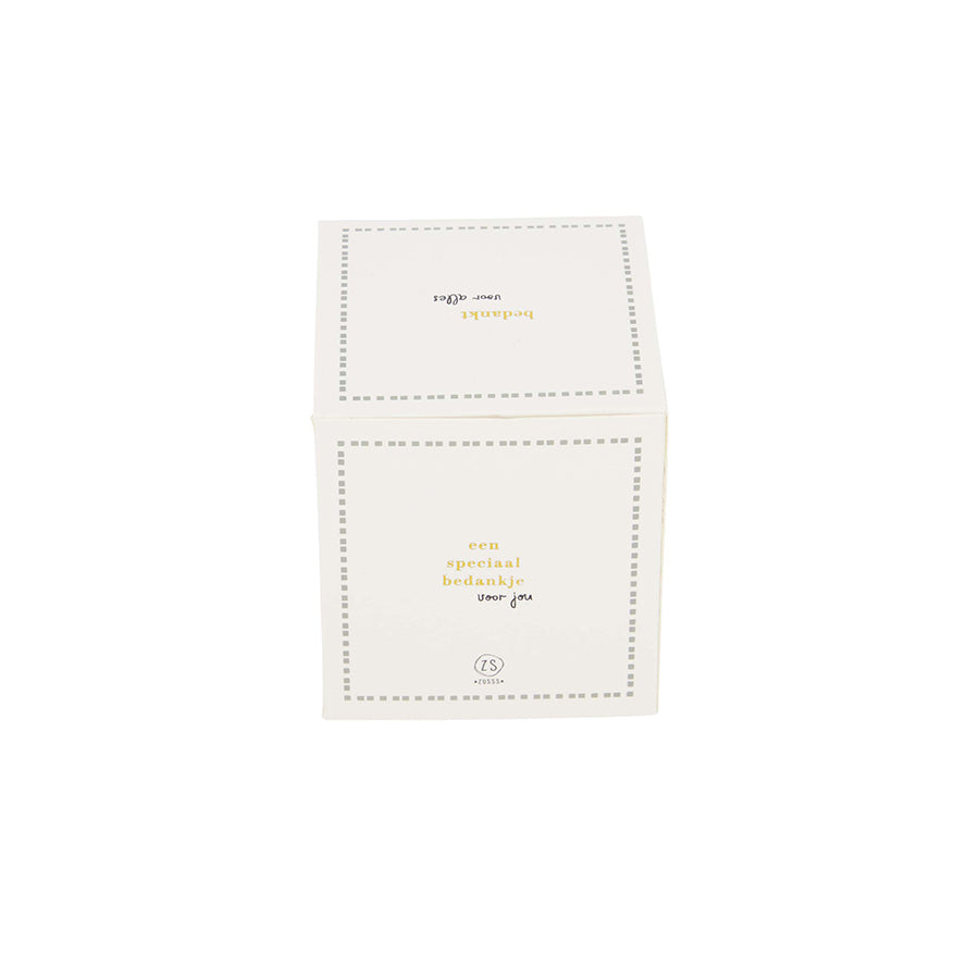 Geurkaars Keramiek in doosje 'Bedankt'-wit/goud/grijsblauw
